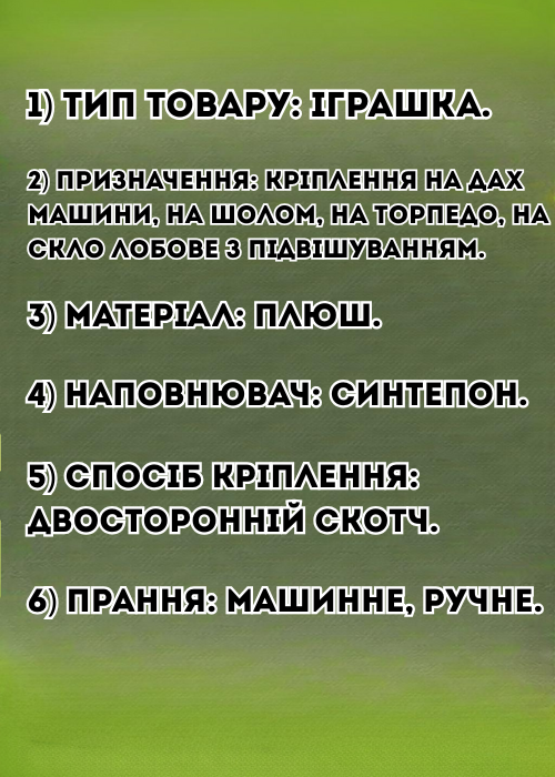 Доставка: Адреса або номер відділення Нової Пошти (чи іншого перевізника).