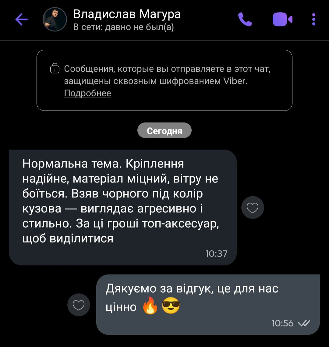 Універсальний розмір — ідеально виглядає на будь-якому авто: від седана до позашляховика.